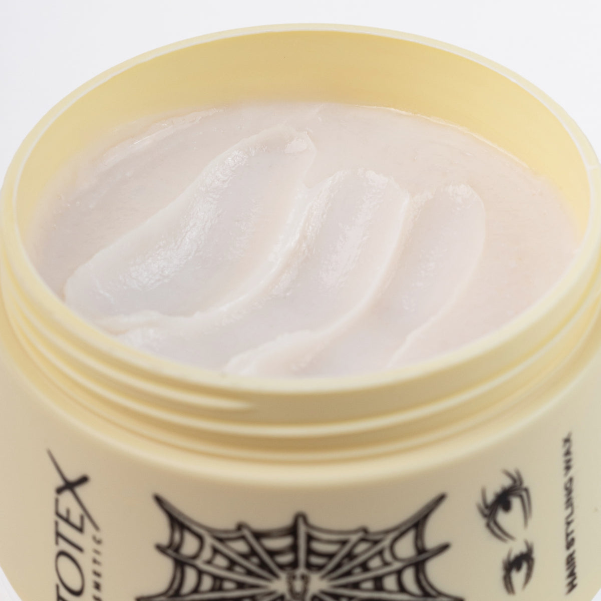 Totex Fiber Hair Wax — also known as "Spider Wax" — brings a next-level styling experience with its fibrous, elastic texture that stretches like webbing between your fingers. This wax delivers a glossy finish, strong hold, and flexible movement, making it ideal for creative, sculpted, or layered hairstyles. Packaged in a unique tan jar, it’s designed for standout looks and modern shelf appeal.