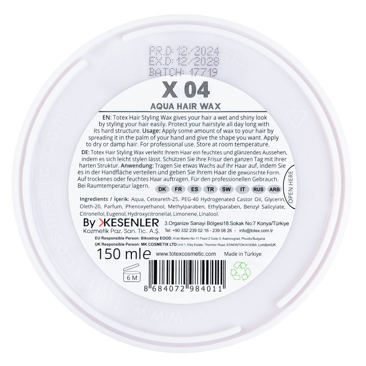 Totex X04 Aqua Hair Wax brings boldness to your grooming routine—inside and out. Designed with the same wet-look, firm-hold formula as the original Freeze Wax, this version adds a rich, upgraded scent and comes in an eye-catching red jar. If you want a product that performs all day and delivers premium fragrance and shelf appeal, X04 is your go-to.